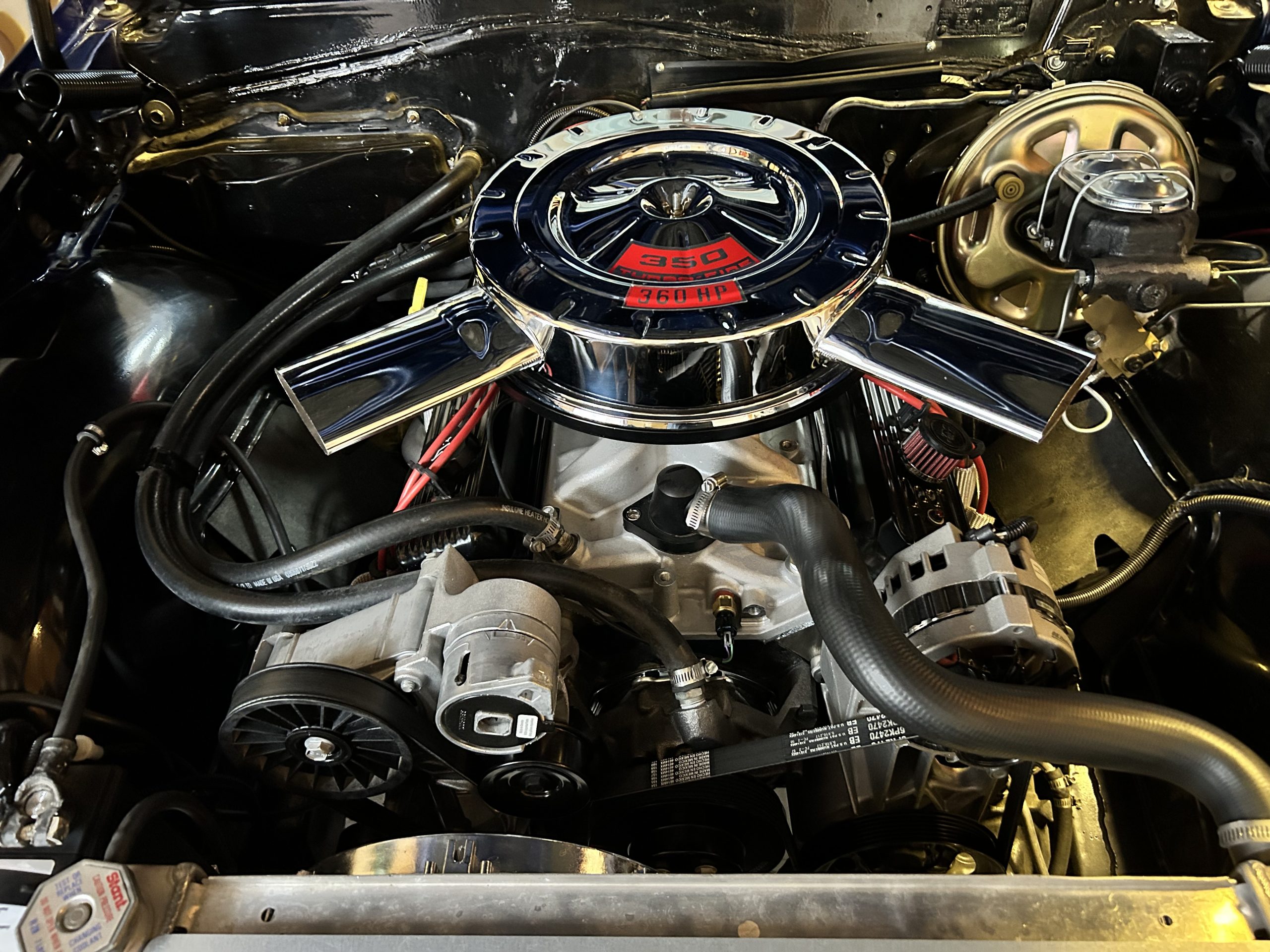 This is an original Malibu S.S. Car (from new) and is restored in it’s original exterior & interior colours.The car now utilizes a brand new Chevrolet Performance SP357 (360 hp) Crate motor c/w a brand new Tremec TKO 500, 5 Spd. Manual transmission. The rear differential is the original 10 bolt GM posi-traction version fully rebuilt at time of original restoration in 2005.The clutch (rated for 500 hp) is hydraulically actuated.The engine relies on a Holley Sniper throttle body fuel injection system for fuelling. The Sniper system also manages the dual electric fans which cool the motor.