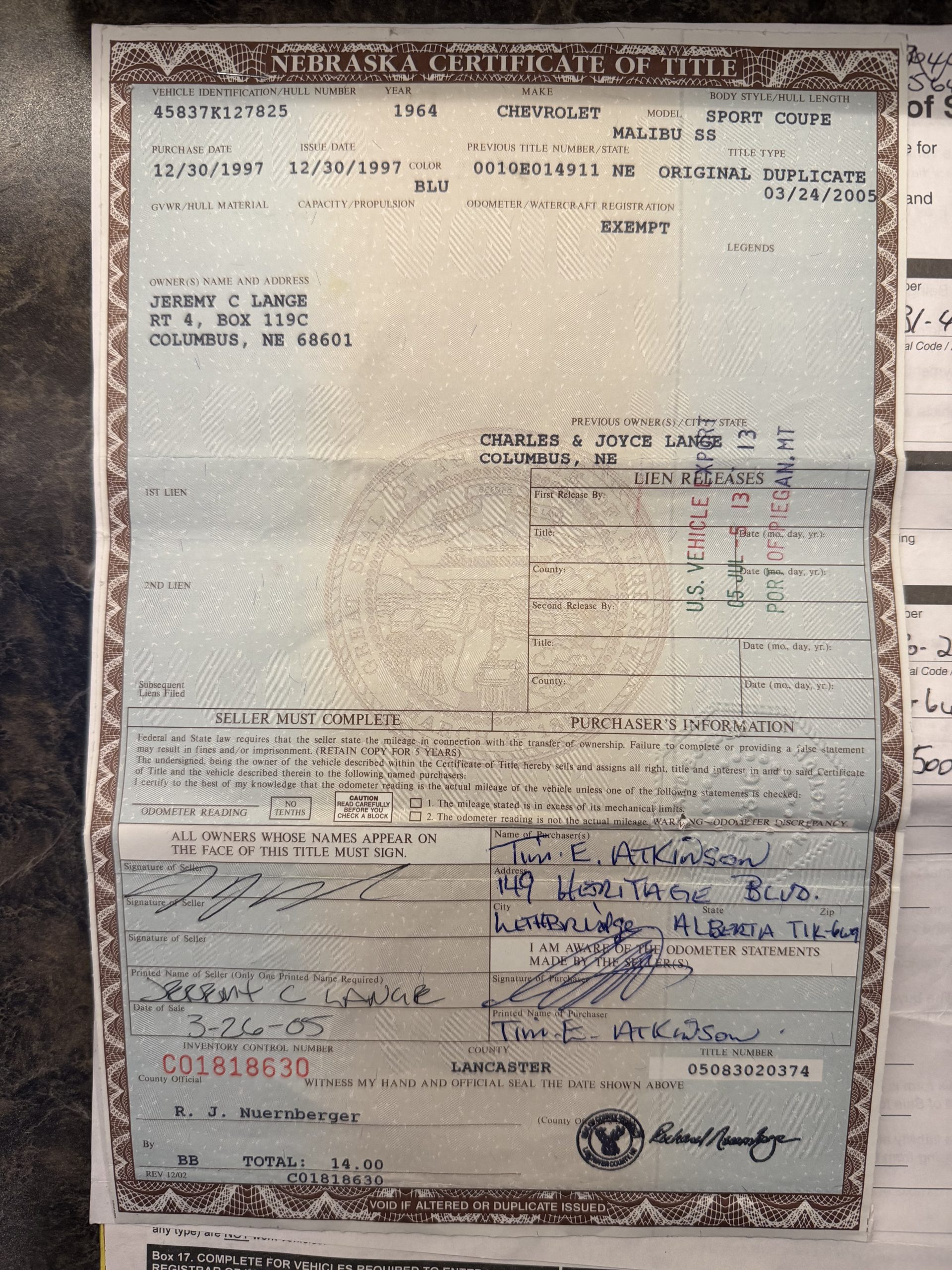 More detailed pics to come! Originally sold in Nebraska. The original BoS accompanies the documentation c/w a Nebraska certificate of title.