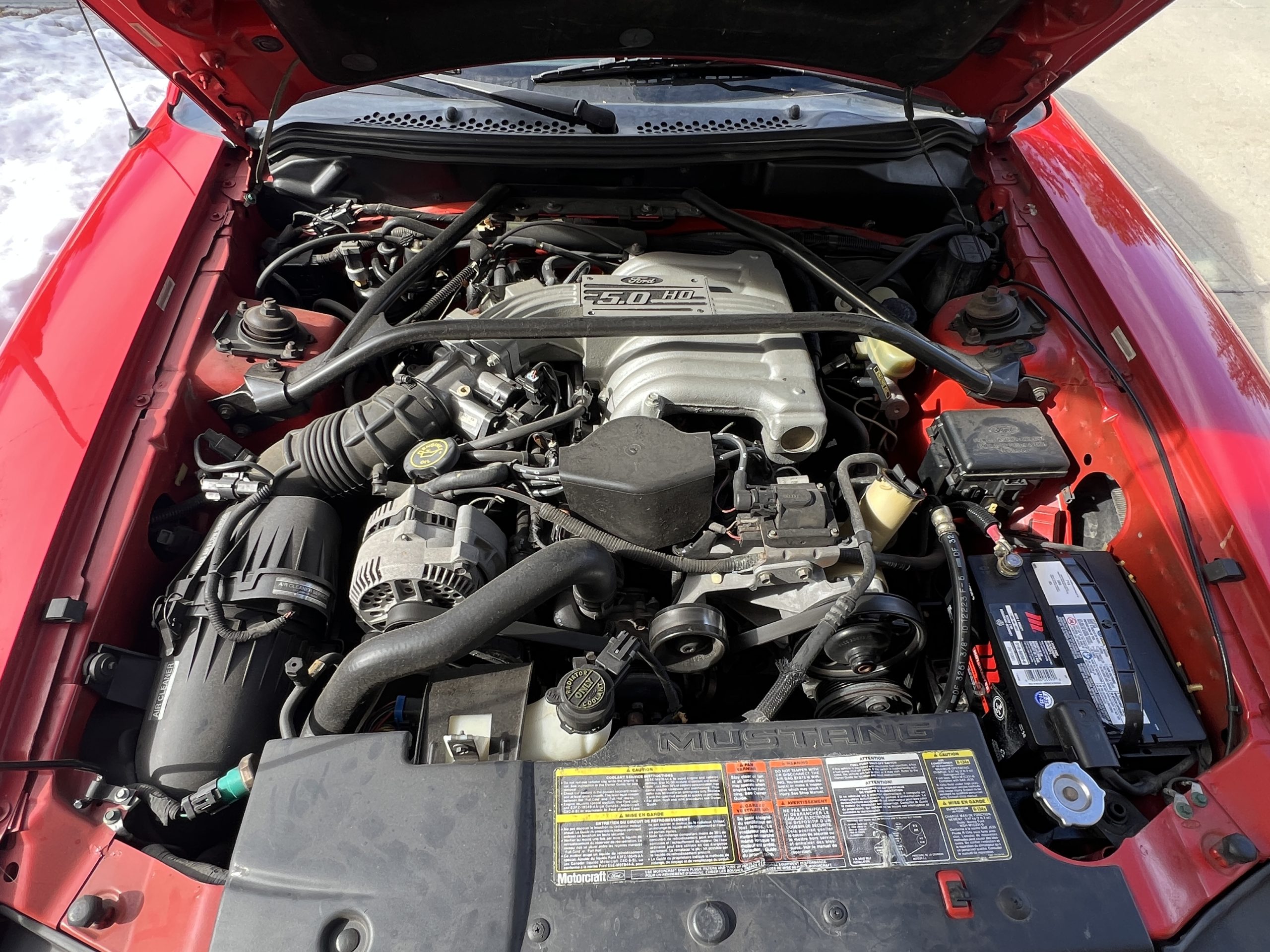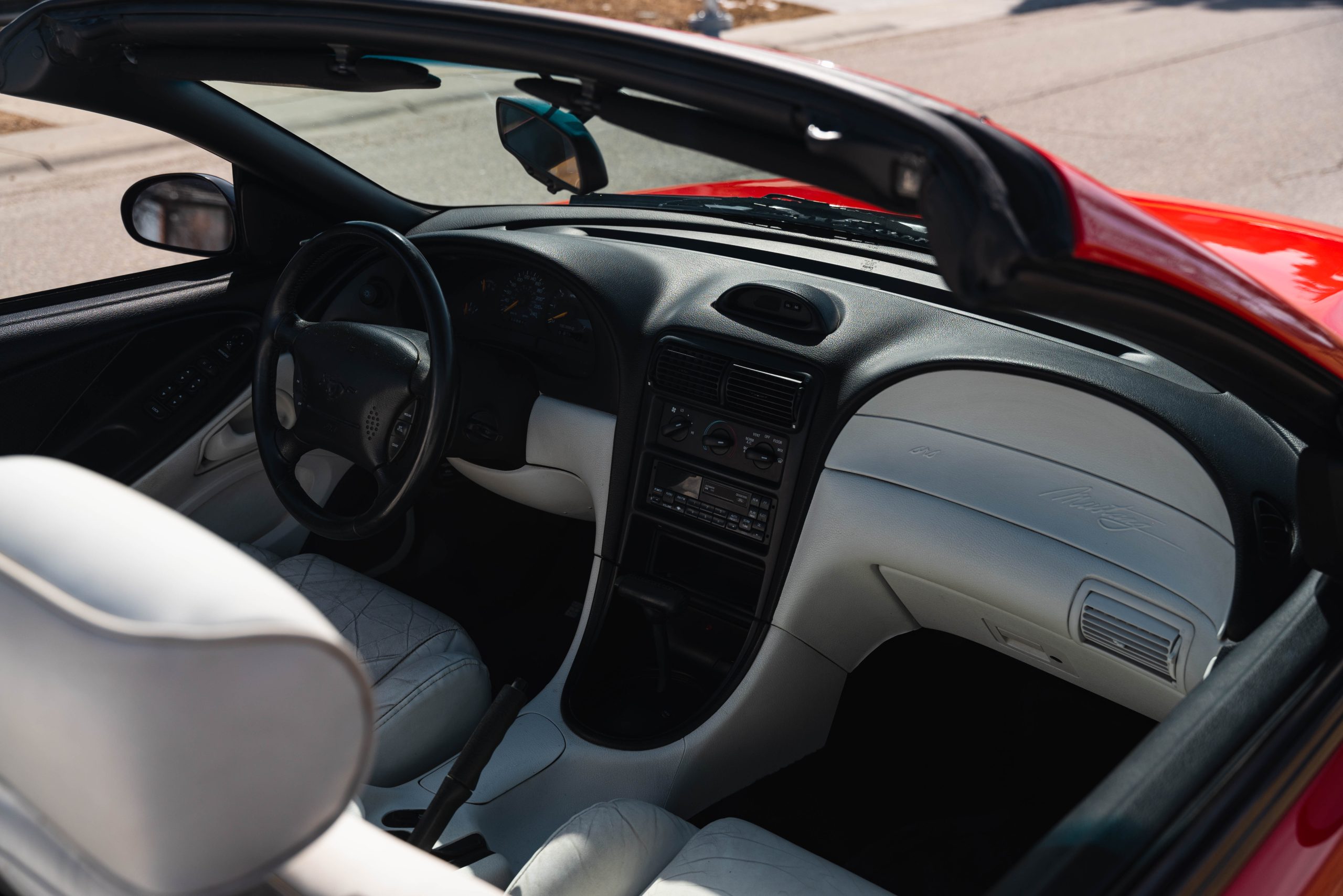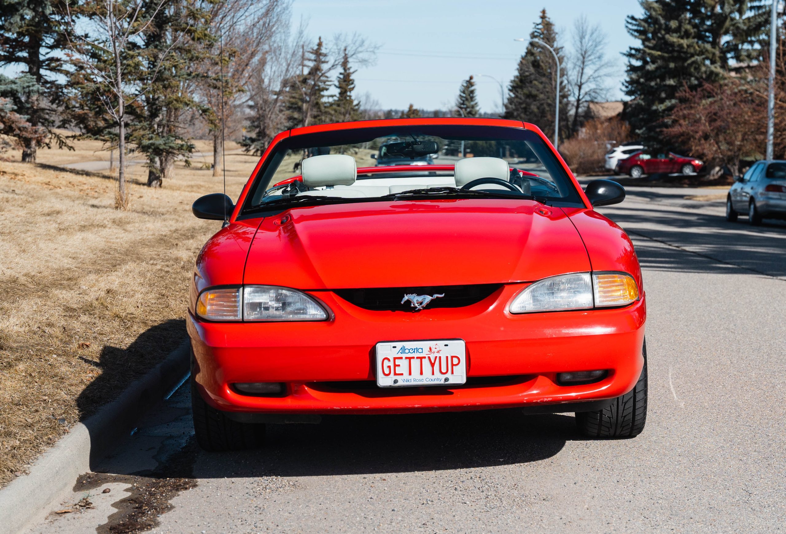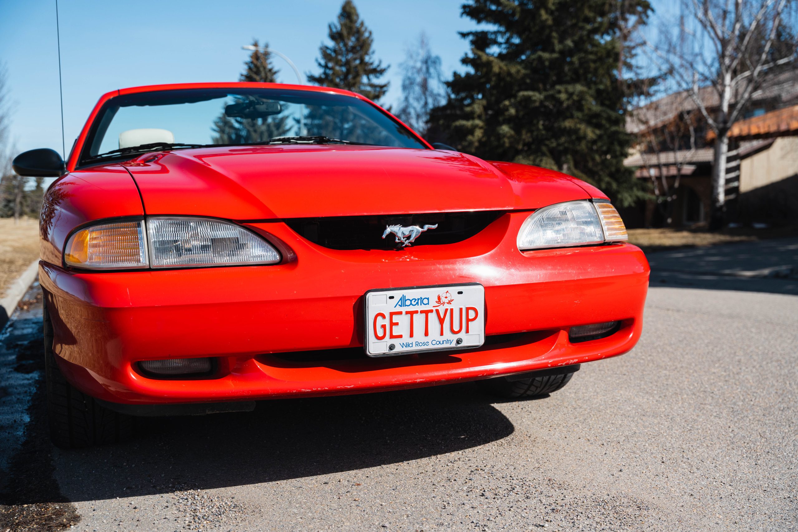 1994 Mustang GT Convertible, which is a 30th year Anniversary special edition car. – First year of revised body style after the Fox Body – It retains the proven 5.0L V8 engine that successfully powered the Mustang for many years. This is originally a Calgary car (Metro Ford) with one-family history of ownership. It has just shy of 110,000 kms. It is never winter driven and always stored inside. It bears only minor blemishes typical of a well cared for, but gently driven car of 32 years old. No apparent cracks on windshield – this car is ready to drive and be appreciated by the next Mustang enthusiast or anyone looking for a great summer cruising vehicle.